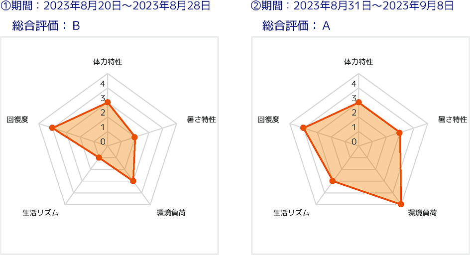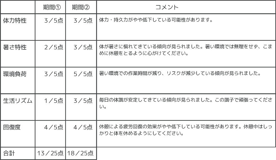 蓄積した生体データを用いて5つ評価指標で解析評価を行う機能です。